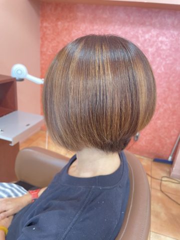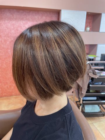明るいカラーをしたいけど、白髪染めだと暗くなってしまう…そんな時はハイライトを少し入れてみてはいかがでしょうか。