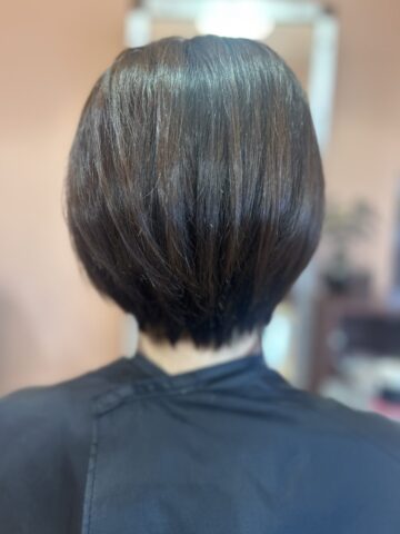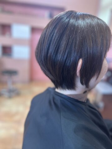 丸めのショートボブ。グラデーションを入れてあり足を軽くしました。