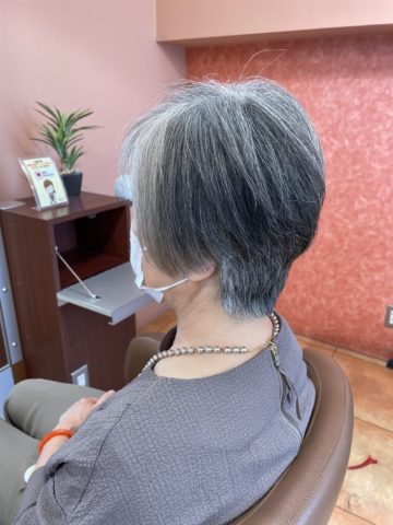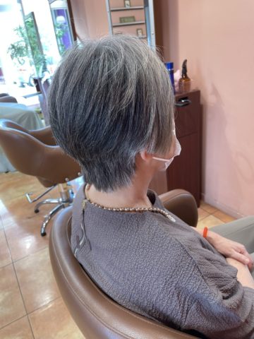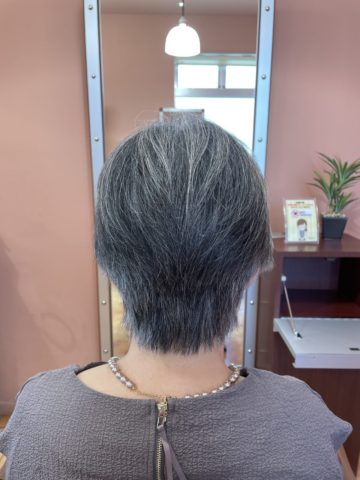 髪質に合わせて、短く纏まりのある髪型にすると、グレイヘアーもオシャレでスタイリッシュになりますよ(^-^)