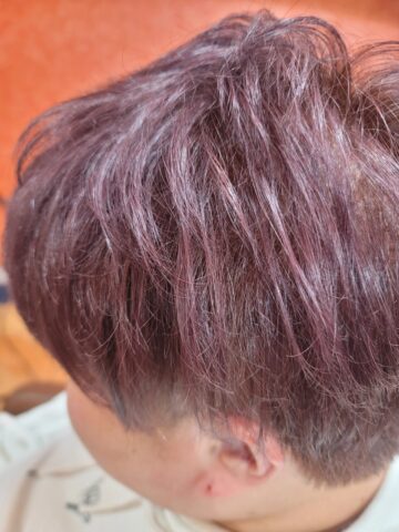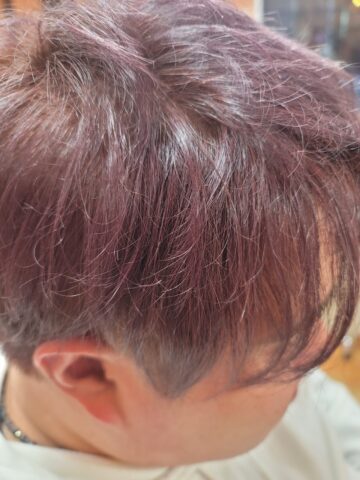 2ヶ月前にブリーチして今回はトーンダウンするという事で9レベルのピンクバイオレットをいれました! ダブルカラーなので綺麗に入りました!