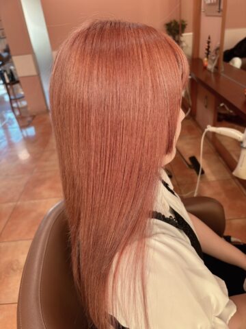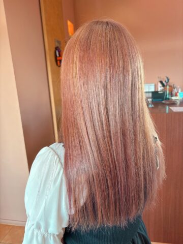 ホームカラーでムラになっていました。ブリーチを①毛先②中間③根元ギリギリ、と3回に分けて塗布。