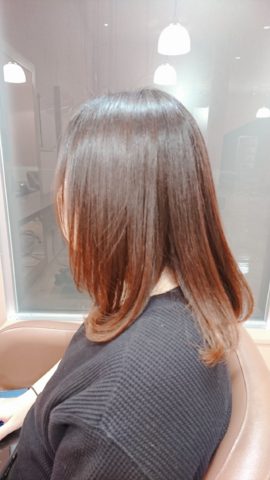 後ろのクセが特に強く毛量も多いので、根元はしっかりストレートにしています。