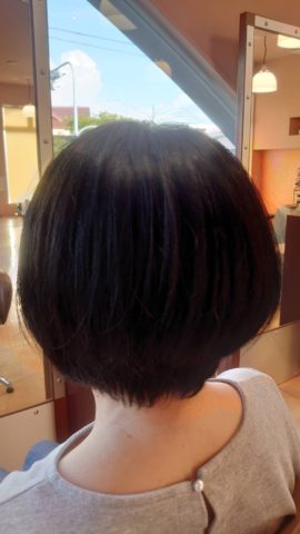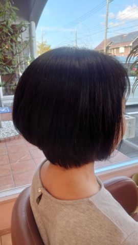 えり足を締め後頭部にボリュームを持たせる事で美シルエットに。