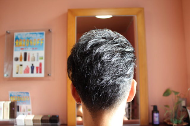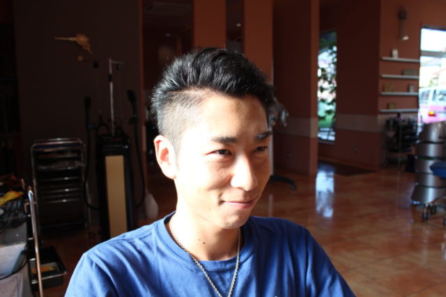 サイドが9mmの2ブロック。トップは動きもつけられるし、きっちりも出来るように長めに仕上げました。