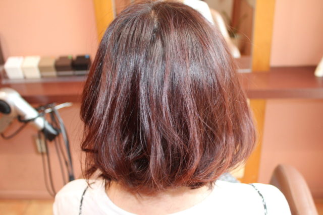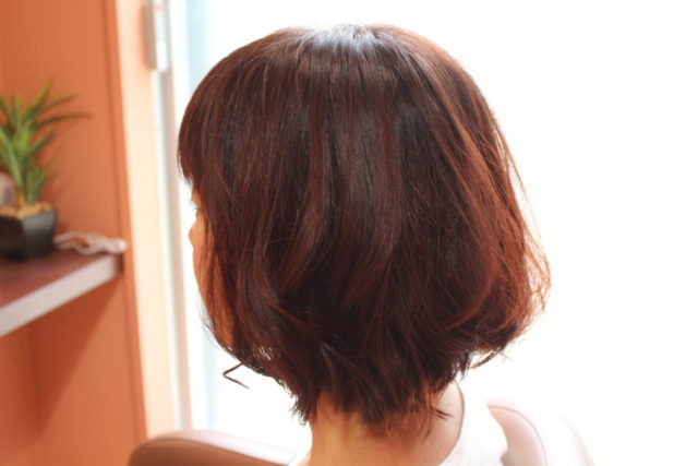 Aラインボブで動きが出るように仕上げ、カラーはピンクベージュのトーンにしてかわいらしさを出しました。