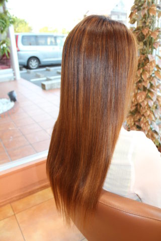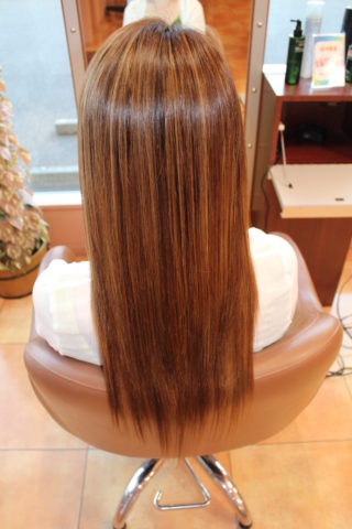 元々、ハイトーンのカラーをされていました。「傷ませず、ストレートにしたい」という事でしたので、通常の薬剤は使用せず、弱酸性の弱い矯正剤でイメージに近い仕上がりにすることが出来ました。