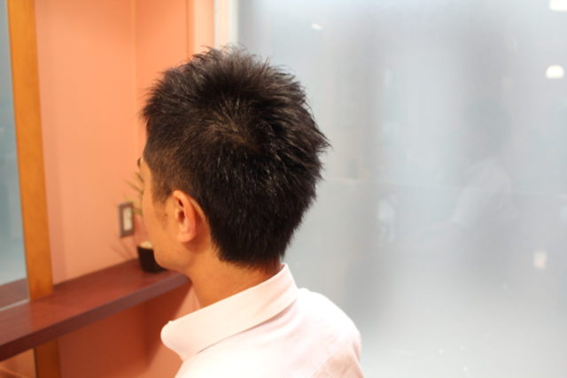 いつも短めスタイルが好きな方なので、バリカンのミリ数を聞き、2ブロックにするか、トップと刈り上げを繋げるか、確認させて頂きました。